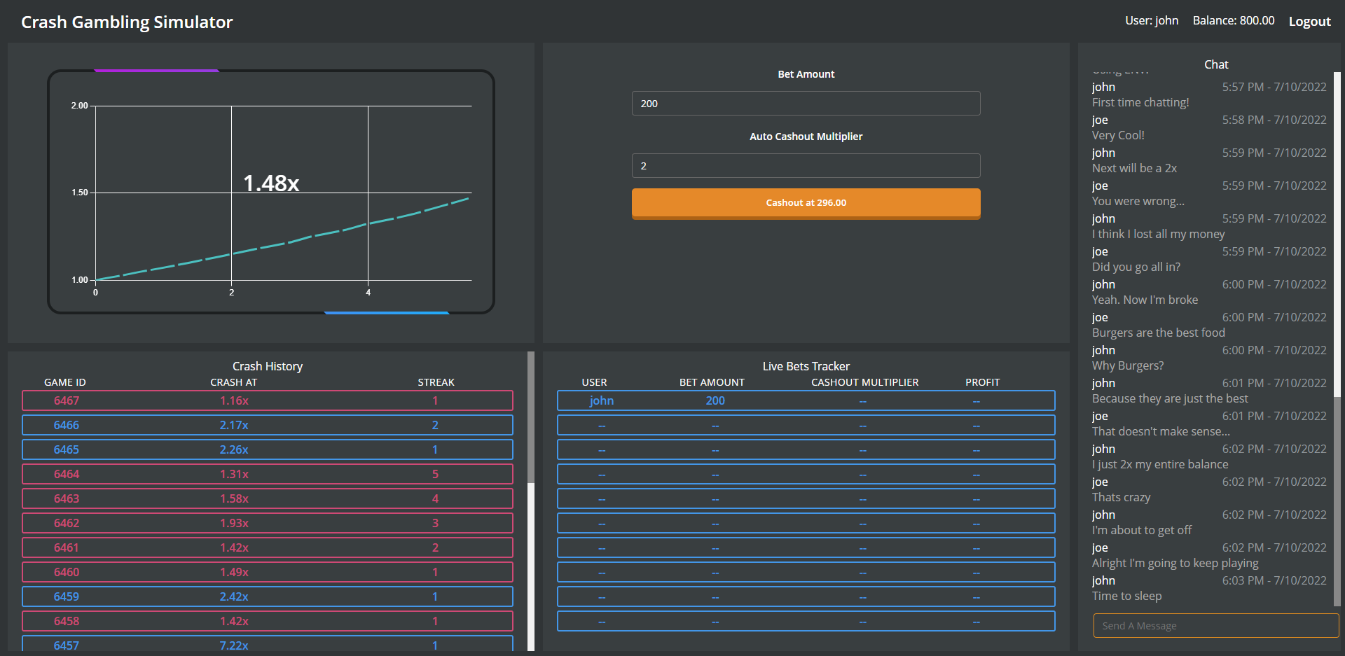 | Multiplier | Starting point after each crash | 1.00x |